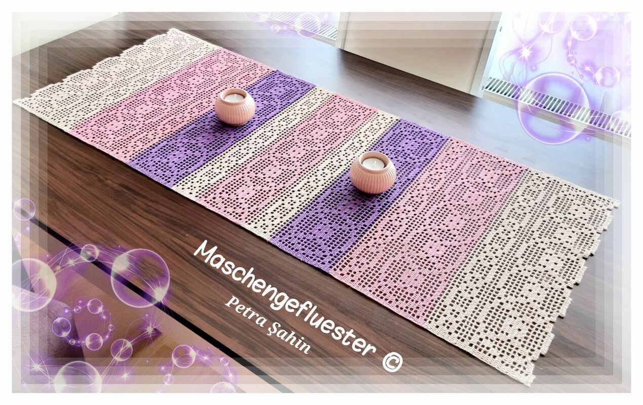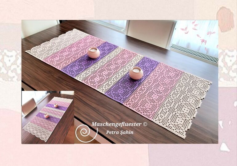 Gearbeitet ist der Läufer mit 10er Alize Miss Filetgarn.