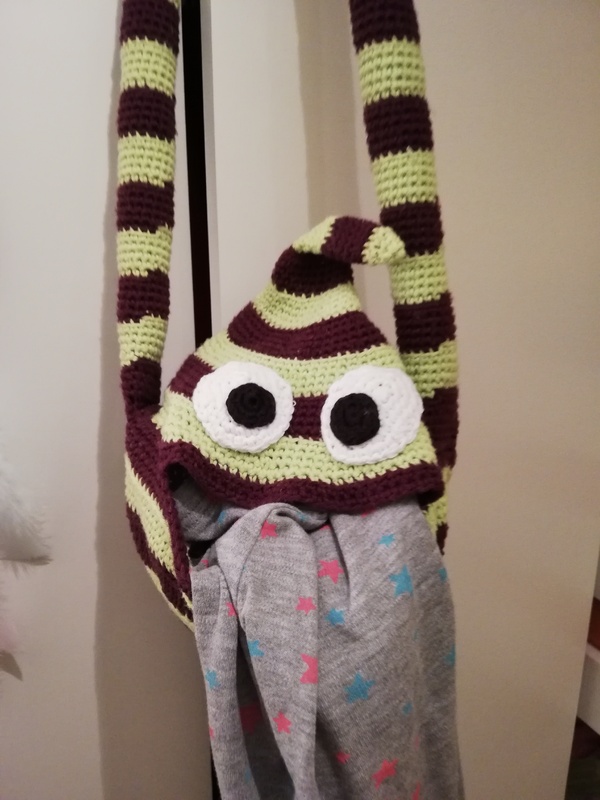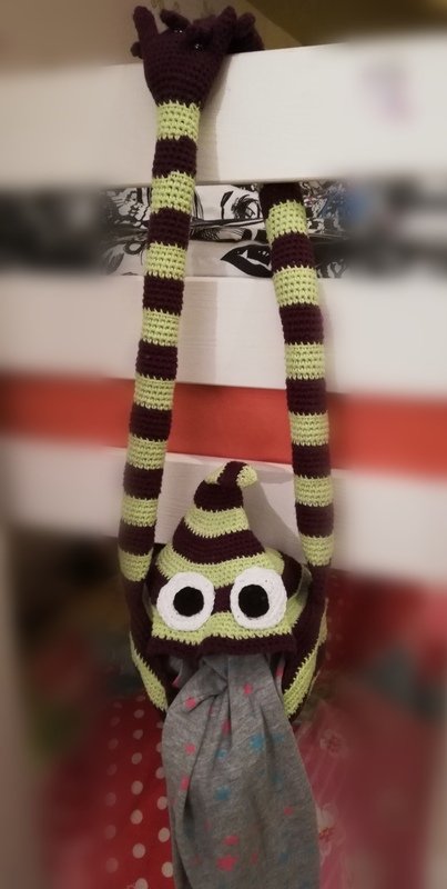 Aus der Not heraus ist der Schlamampfie entstanden, da meine Töchter ihre Schlafanzüge überall liegen lassen. So macht es ihnen Spaß Ordnung zu halten. Und ich finde ihn auch ganz putzig!