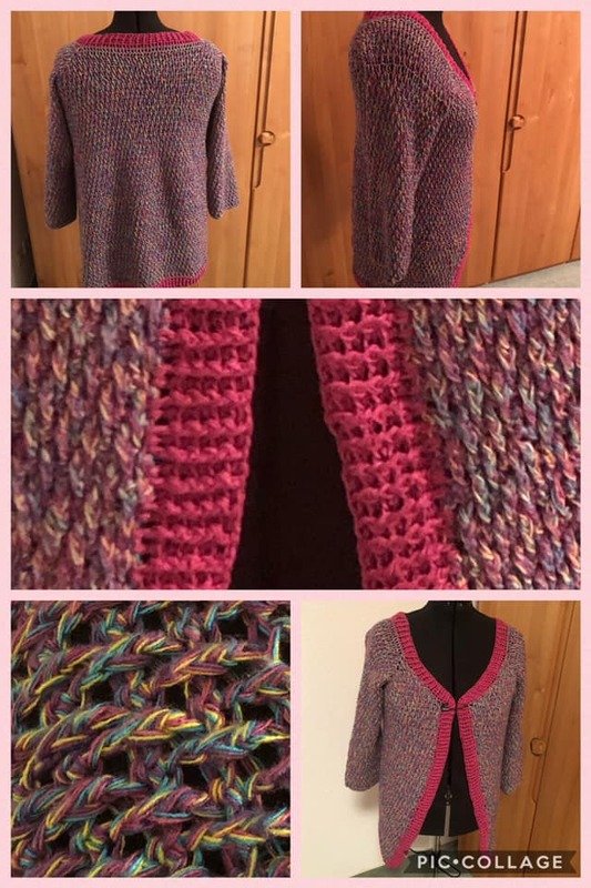 Eine elegantes, schickes und dichtes Muster, welches auch zusätzlich noch fernsehtauglich ist, hier als Set mit Jacke, Stulpen, Schal und Mütze.