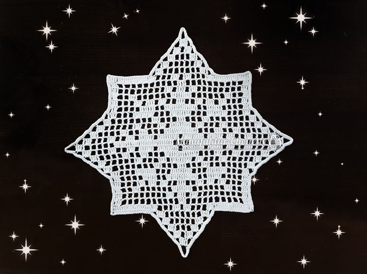 Stern: 23 x 23 cm von Zacke zu Zacke mit festen Maschen umrandet und gespannt.