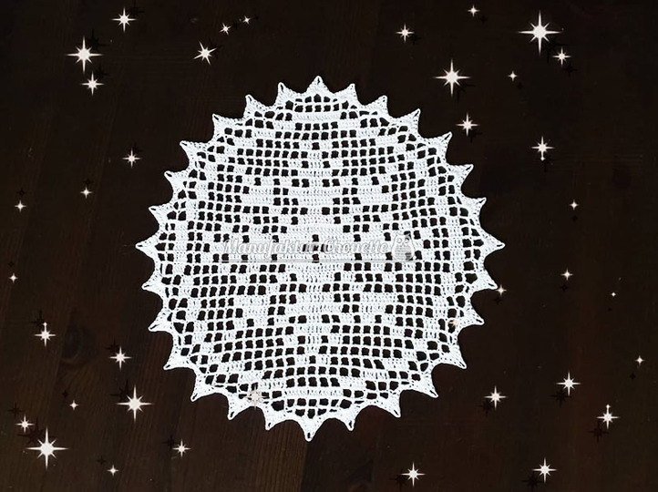 Du kannst gern so viele Deckchen häkeln, wie Du möchtest. Mit einem Hinweis auf mein Urheberrecht der Anleitung darfst Du Deine selbst hergestellten Deckchen auch zum lokalen Kauf anbieten. Angebote als Auktion sind NICHT gestattet!"