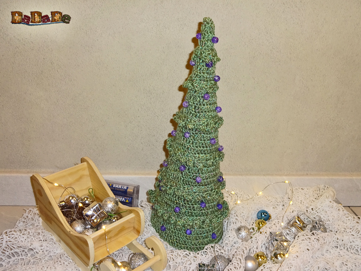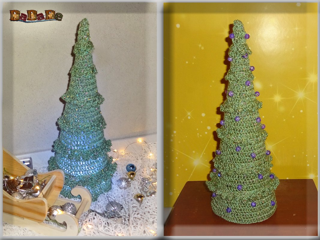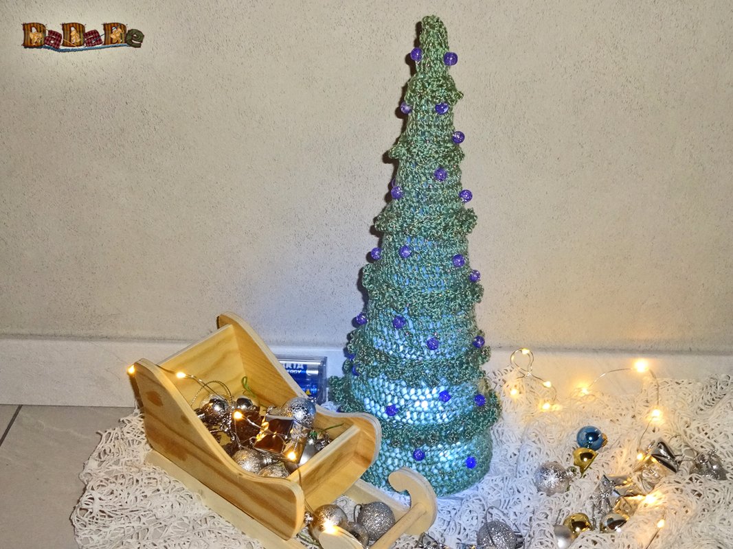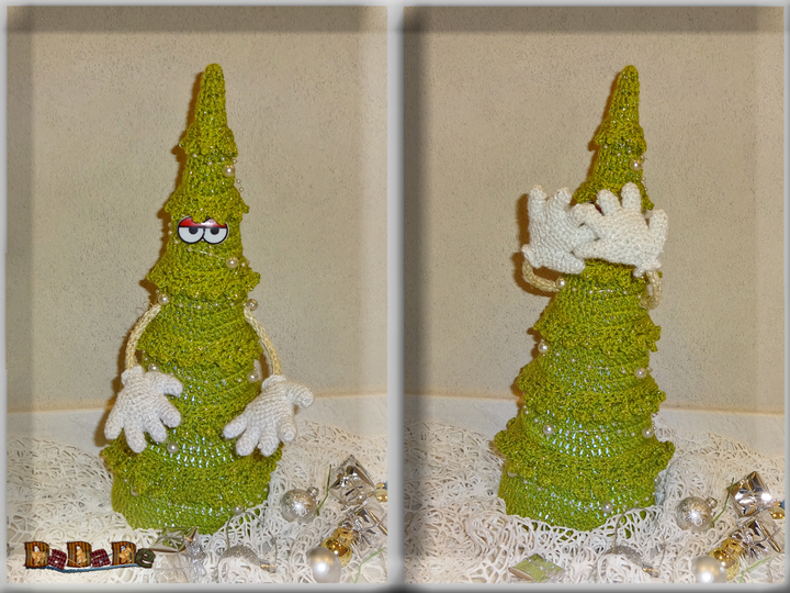 Mit Glitzerwolle der Nadelstärke 3 wird der Tannenbaum ungefähr;
