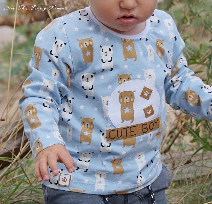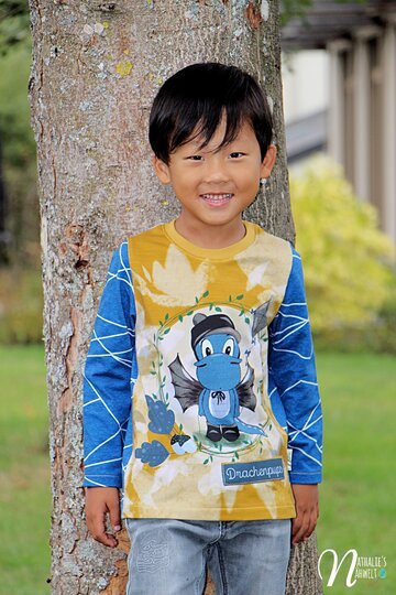Adam ist ein Shirt mit legerer Weite für Jungs in den Größen 86 bis 146. Es kann als Langarm- und als Kurzarmvariante genäht werden – dadurch kann dich Adam das ganze Jahr über begleiten.