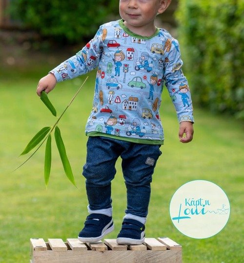 Bunt genäht bringt das Shirt jede Menge Farbe ins Leben - uni ist es ein schickes Basic-Teil für kleine und große Lausbuben.