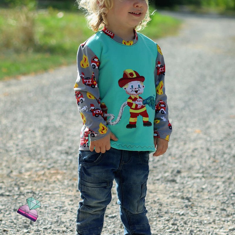 Das Shirt kann natürlich von Mädchen und Buben gleichermaßen getragen werden. Aus der Sicht der Schnittkonstruktion gibt es Unterschiede in den Maßtabellen von Mädchen und Jungen. Bei den ganz kleinen Größen sind diese Unterschiede relativ gering, aber mit zunehmendem Alter wirken sich diese auch auf die Passform aus.