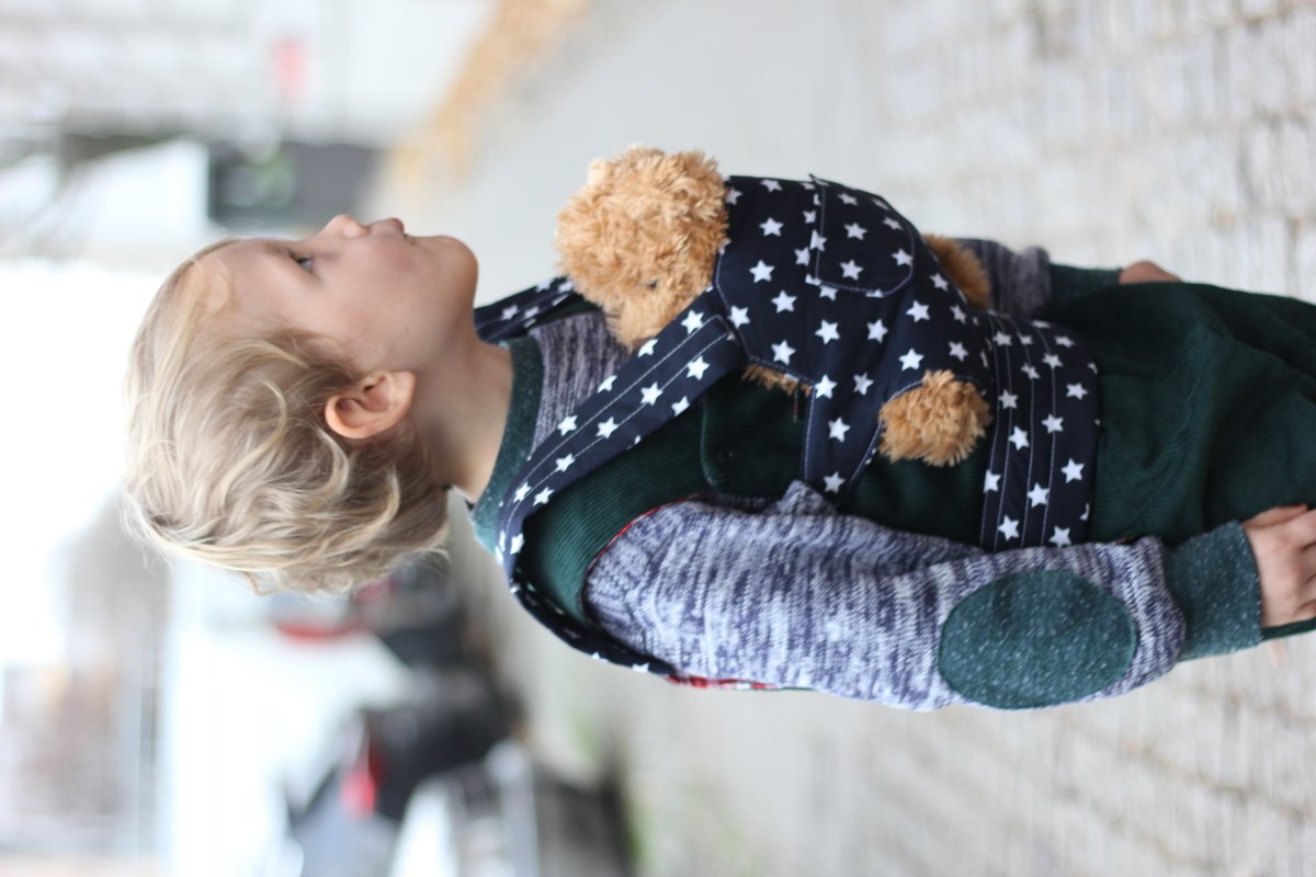 Dein Kind kann die Trage am Bauch oder auf dem Rücken tragen. Gerade wenn Kinder ein Geschwisterchen bekommen haben und es bei Mama sehen, wollen sie gern das Tragen nachahmen. Mit Feli können sie das nun tun.