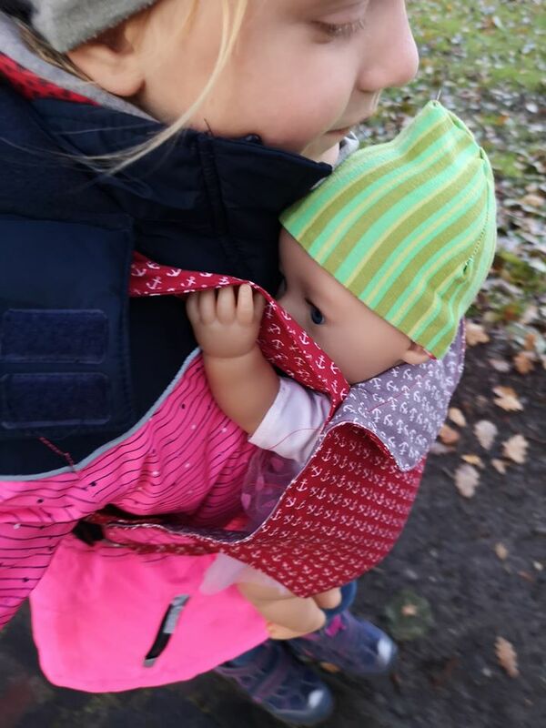 Die Puppentrage Feli lässt Kinderherzen höher schlagen: Egal ob Püppi, Bär oder anderes Kuscheltier- der Lieblingsbegleiter kann jetzt ganz wie bei großen Mamas immer mit dabei sein.