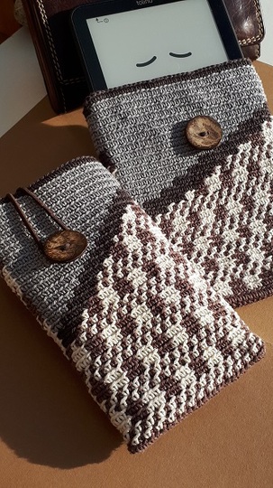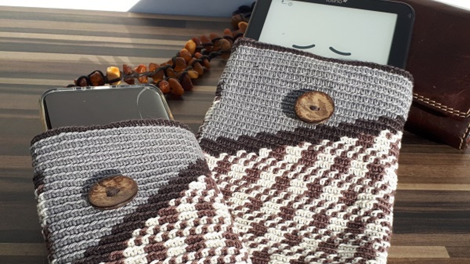 Dieses kleine Projekt ist ideal um die Tapestry-Technik zu üben. Diese schnell gehäkelten Hüllen sind ein guter Kratzschutz für dein Handy und Ebookreader, wenn es in der Tasche verschwindet. Die Hülle wird etwas größer gehäkelt als das Gerät selbst, so dass du das Handy oder ebook-reader leicht rein- und rausnehmen kannst.