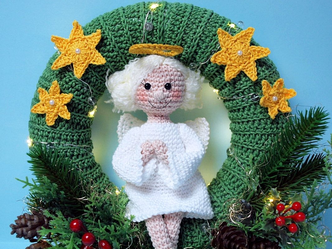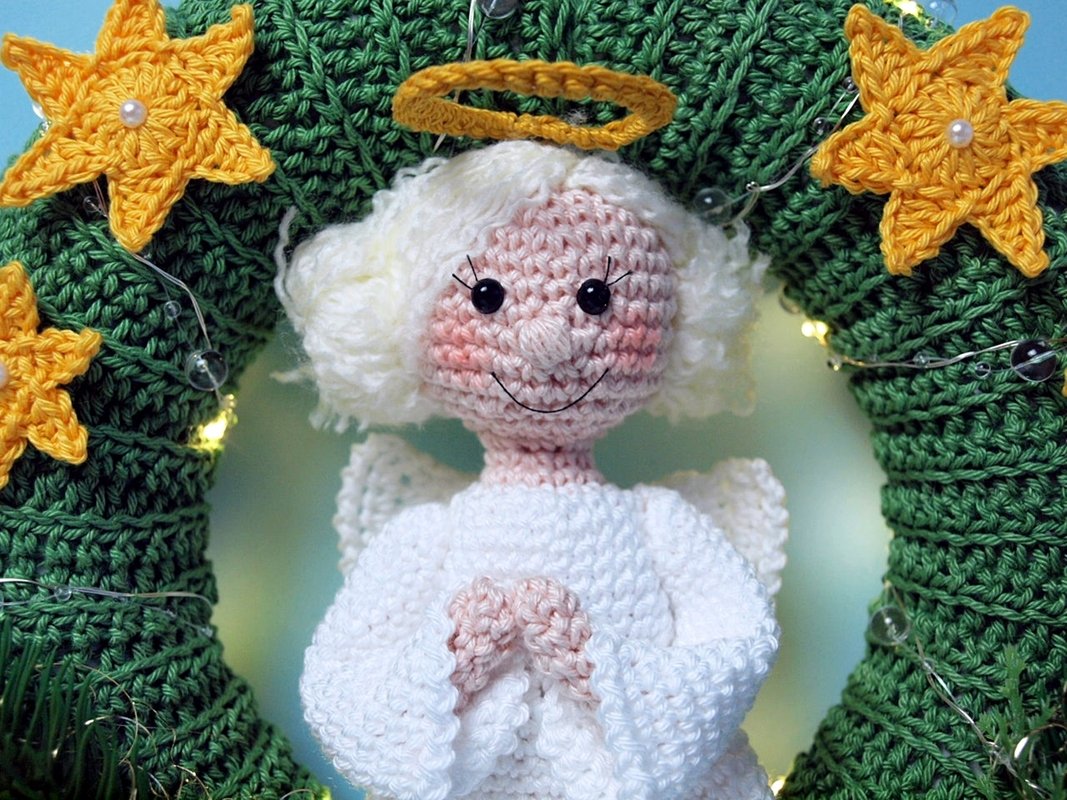 Häkelanleitung für einen Türkranz mit Engelchen