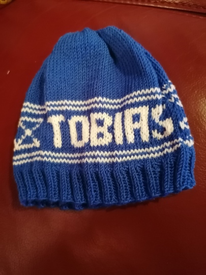 Du erhälst eine Strickanleitung für eine Kindermütze mit Namenszug im Norwegermuster