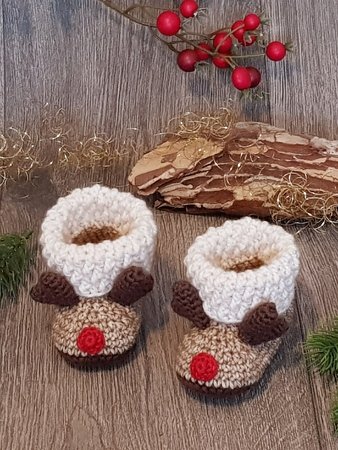 Diese niedlichen Babystiefel mit Rentier-Geweih und roter Nase sind gerade in der kalten Jahreszeit ein liebevolles Geschenk für werdende oder frischgebackene Eltern sowie auch ein tolles Accessoire für weihnachtliche Babyfotos.