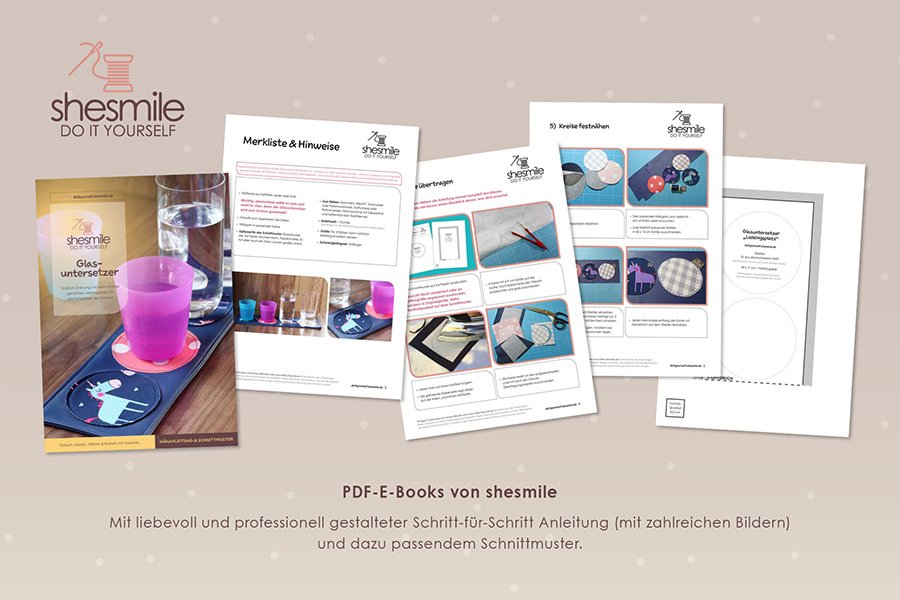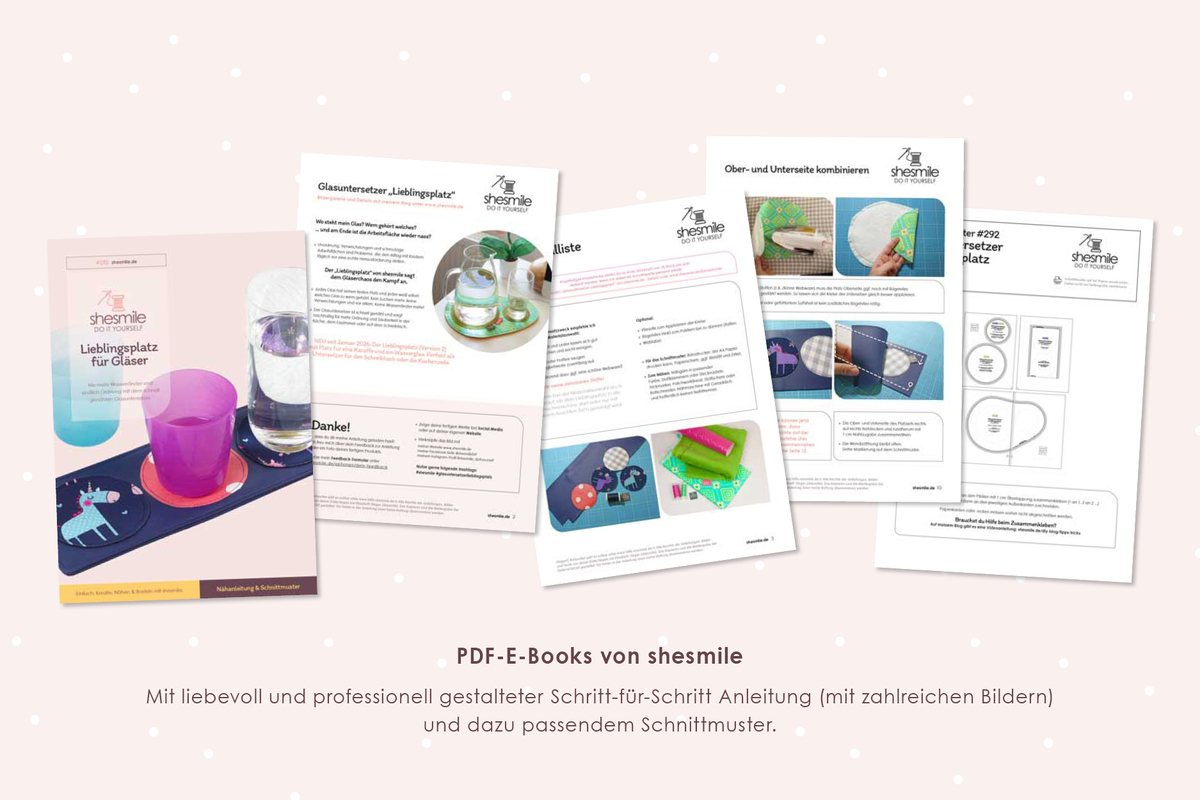 PDF-E-Books von shesmile: Diese leicht verständliche Schritt-für-Schritt-Anleitung mit vielen Fotos ist auch für Nähanfänger geeignet, denn die sehr ausführliche Fotoanleitung begleitet dich bei jedem Schritt.