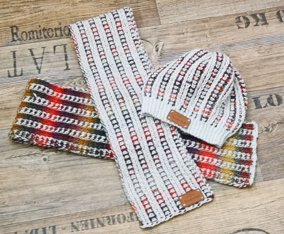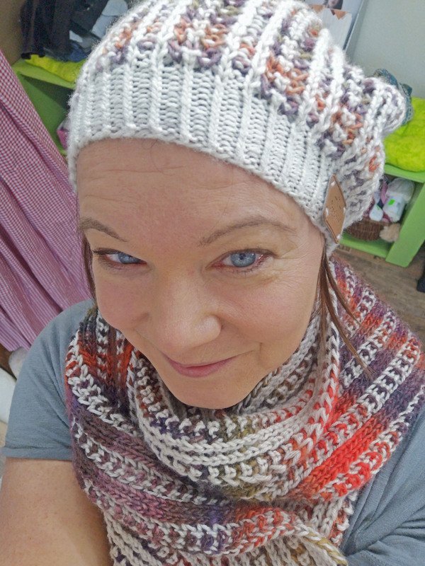 Mütze und Schal sind sehr einfach zu stricken, ausser Maschenanschlag, rechten und linken Maschen wird nur das Zusammenstricken von Maschen und Abheben von Maschen benötigt. Wobei die Mütze noch einfacher zu stricken ist als der Schal.