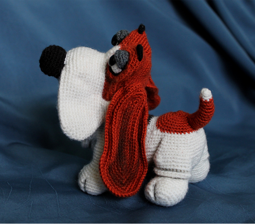 Ich möchte Ihnen meine neue Häkelanleitung vorstellen. Mein Basset heißt Hamlet. Sehr edler Herkunft mit großen traurigen Augen.
