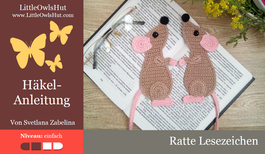 Größe: Mit dem von mir empfohlenen Garn ist das Lesezeichen ca. 24 cm lang
