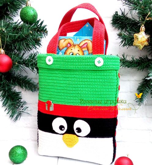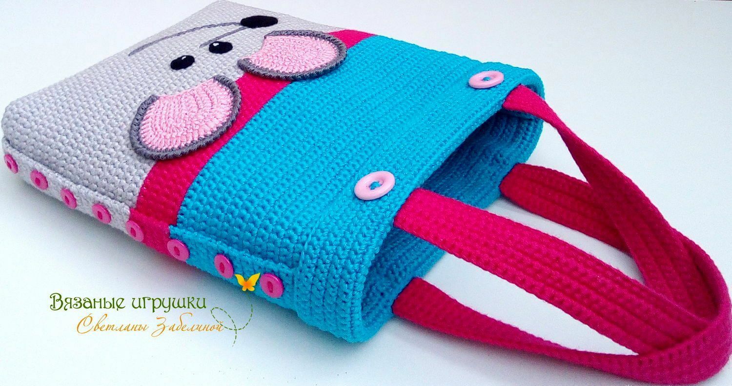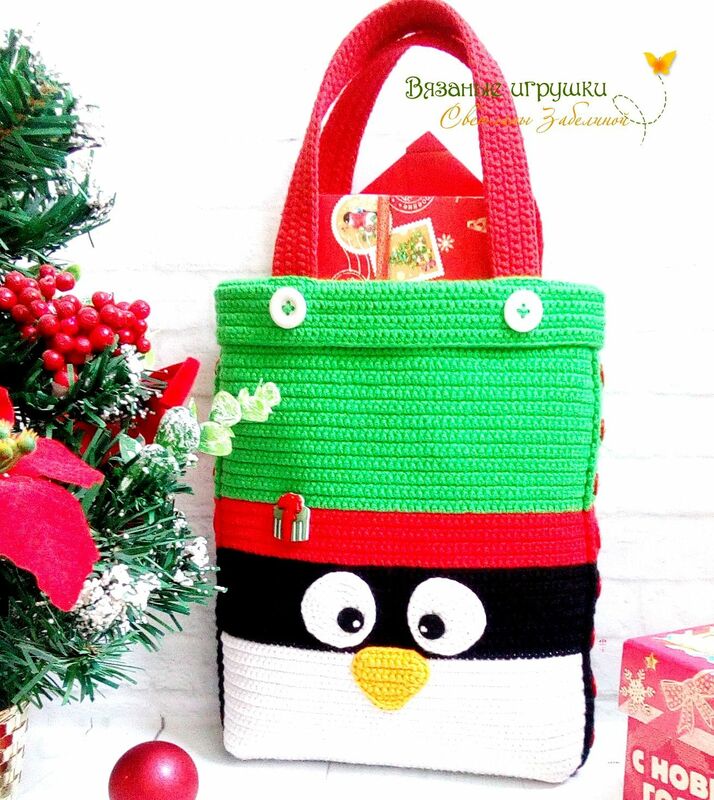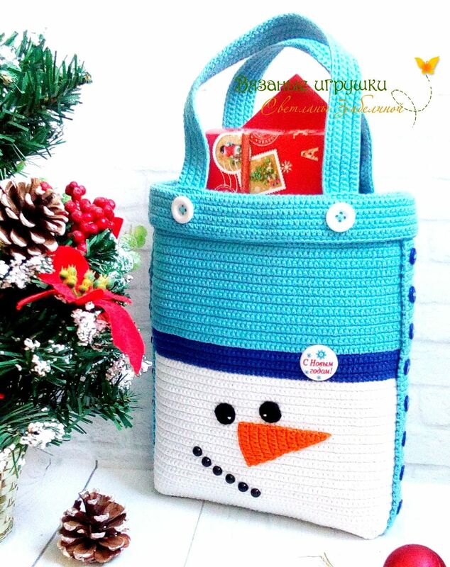 Die Tasche ist mit 100% Baumwolle gehäkelt, 425-430 m / 100 g. (bei mir Troitskaja Wollenfabrik). Für die Augen brauchen Sie ein Baumwollgarn, das halb so dick ist, wie das Hauptgarn.