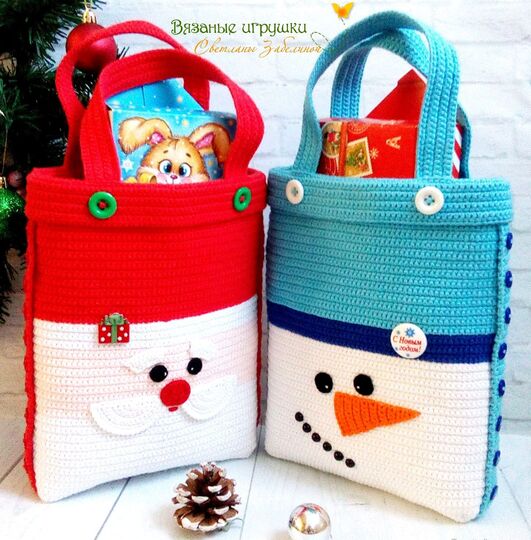 248DE Geschenktaschen: Weihnachtsmann und Schneemann