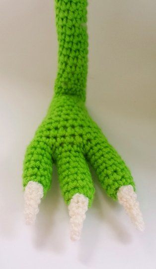 Gehäkelt wird mit Garn in grün, weiß, creme, blau, schwarz.