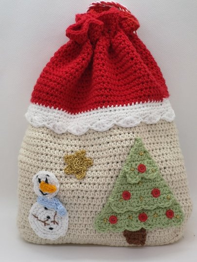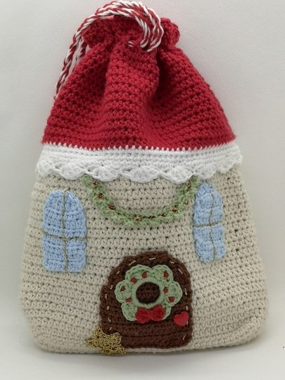 Der Beutel wird mit Baumwollgarn ( LL 115/50g) ca. 25 cm groß.