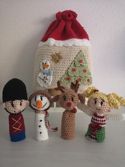 Die Fingerpuppen werden mit dem Baumwollgarn ( LL125/50) und einer Häkelnadel No.2,5 ca. 11 cm groß.