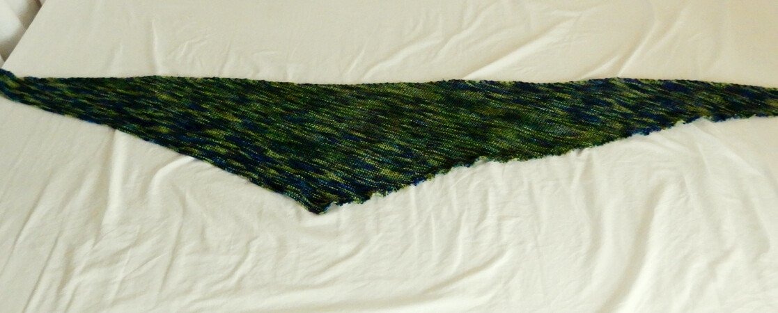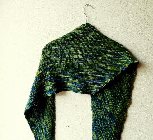 Moss ist Hochgeschwindigkeitsstricken. Wenn man ein Geschenk braucht, das schnell fertig sein soll, dann ist es dieser Dreiecksschal. In mittelstarkem Garn und kraus rechts gestrickt, ist er blitzschnell fertig.