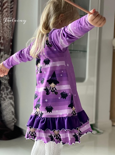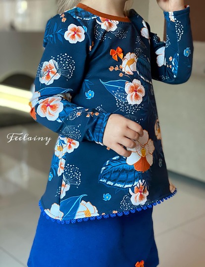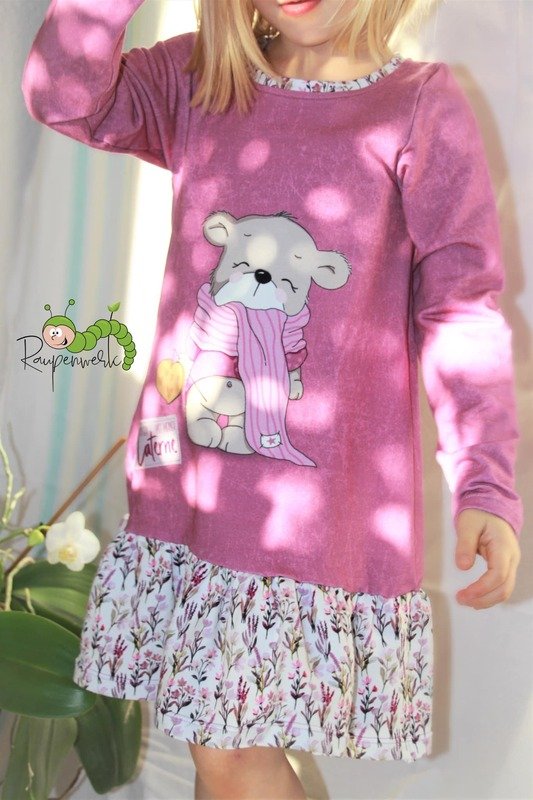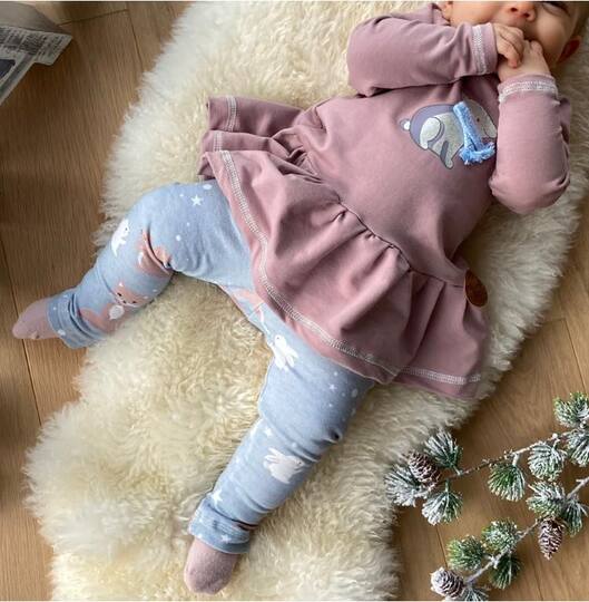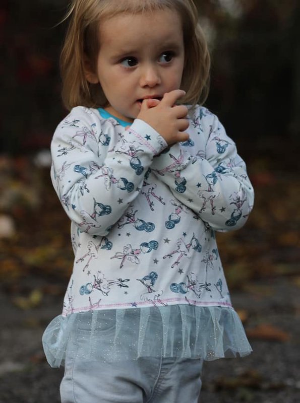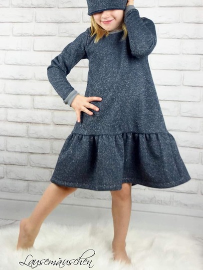 „Mini&Me Winterdress“ ist ein sehr vielseitiges Schnittmuster, das du sowohl als schlichten Pullover, als auch als schlichte oder gar etwas extravagante Tunika, oder auch als festliches Kleid nähen kannst. Hierzu enthält das Schnittmuster passend zum Oberteil diverse Ärmelvarianten und Volantlängen, sodass du hier sehr viel Spielraum hast, dein eigenes Winterdress zu gestalten.
