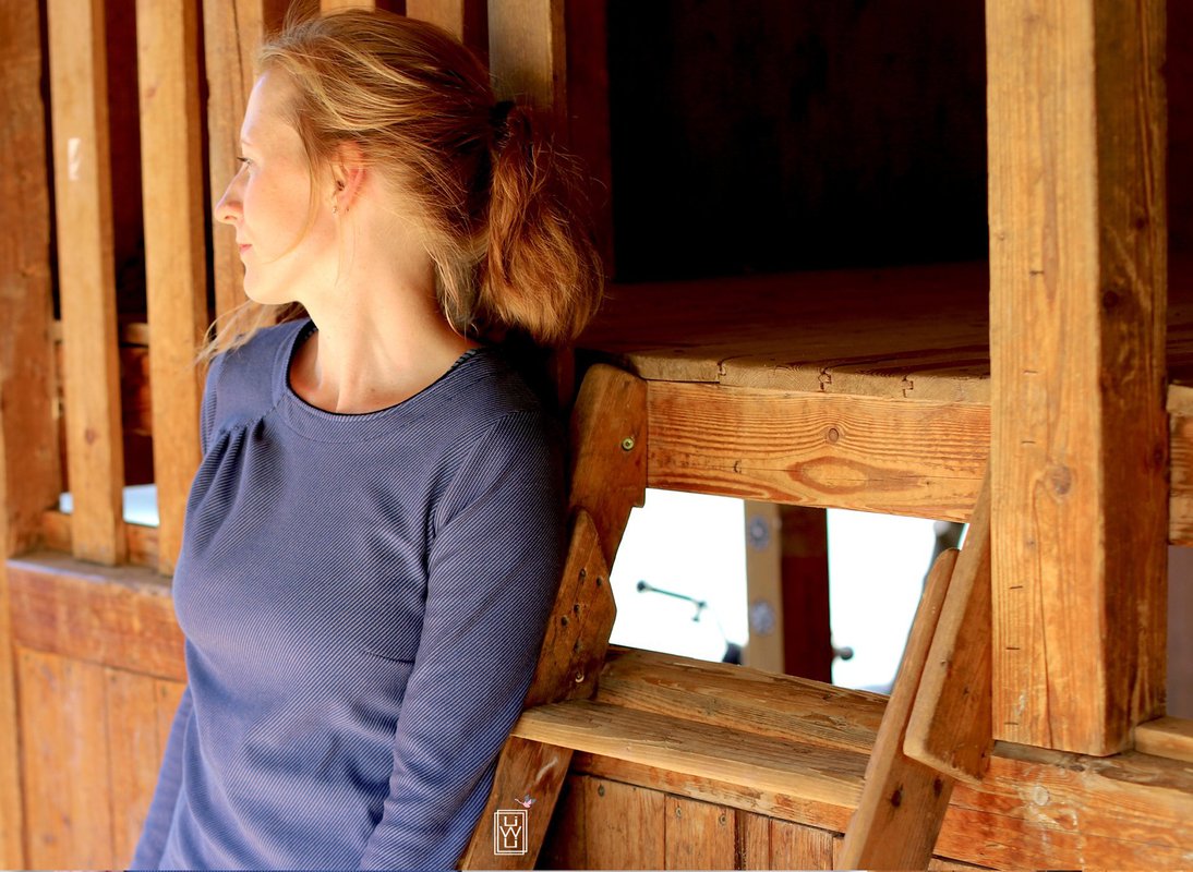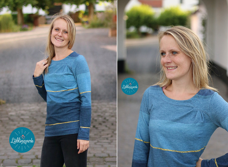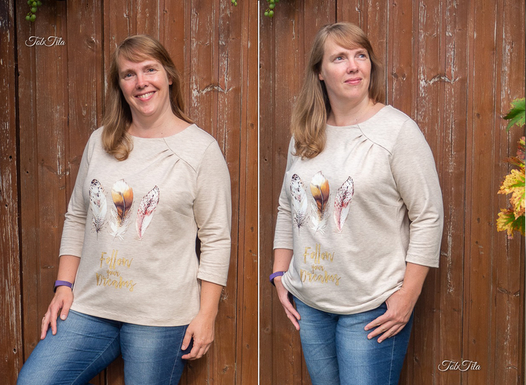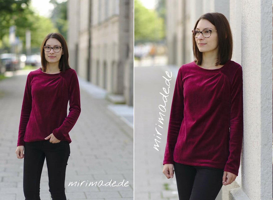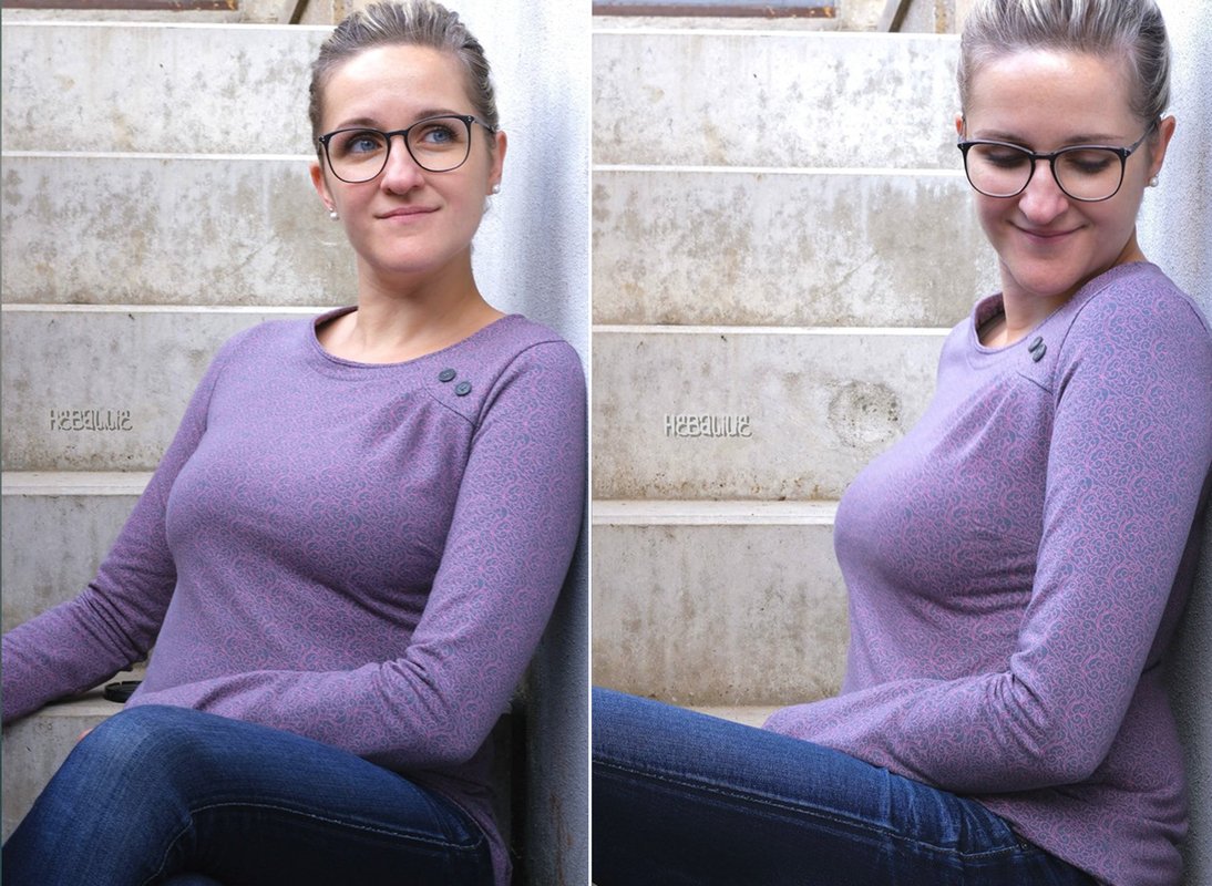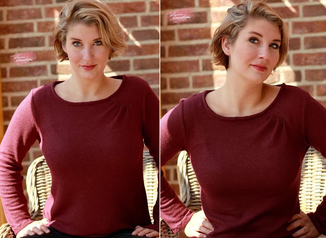 Agathe ist ein schlichter aber gleichzeitig schöner Basic-Pullover für Damen. Durch die charakteristische Faltung im Vorderteil wird das Oberteil zu einem ganz besonderen Hingucker. Deine Agathe braucht keine aufregenden Stoffe. Am besten sieht sie aus uni-farbenen oder ruhigen Mustern aus, wie ein von innen heraus strahlender Diamant. Du kannst Agathe elegant im Büro tragen. Da sie aus dehnbaren Stoffen wie Sweat genäht wird, ist sie aber auch für einen Tag auf dem Sofa perfekt geeignet. Agathe kannst du mit langen oder ¾ -langen Ärmeln nähen. Agathe wird deinen Kleiderschrank sicher perfekt ergänzen!