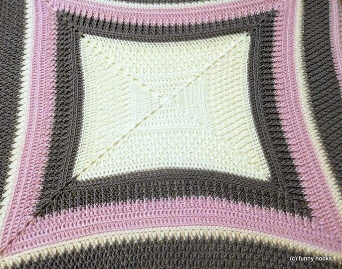 Ich habe eine Babydecke gearbeitet mit 90 x 90 cm