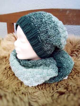 Ihr bekommt hier die Anleitung für ein Winterset, bestehend aus Mütze und Loop bzw. Halssocke, die ihr für die ganze Familie in allen Größen häkeln könnt.