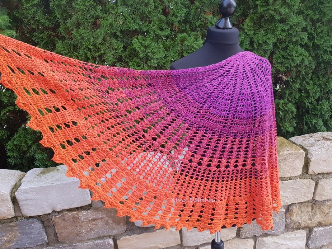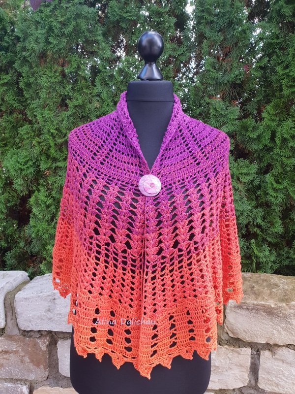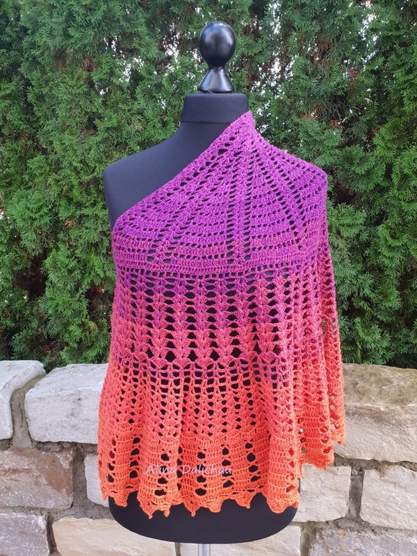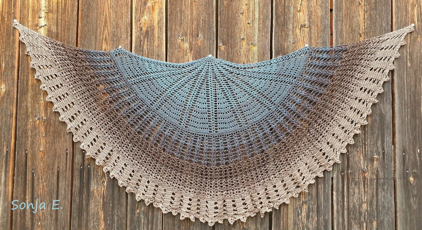 Diesmal sollte es ein einfaches Tuch werden, auch für gute Anfänger geeignet, aber trotzdem wunderschön und eindrucksvoll! Es soll seiner Trägerin schmeicheln, ihre Schönheit kunstvoll umrahmen. Liebe macht uns schön. Wärme und Ausstrahlung macht unsere Aura sanft. Ein wenig mutet es an wie zarte Sonnenstrahlen!