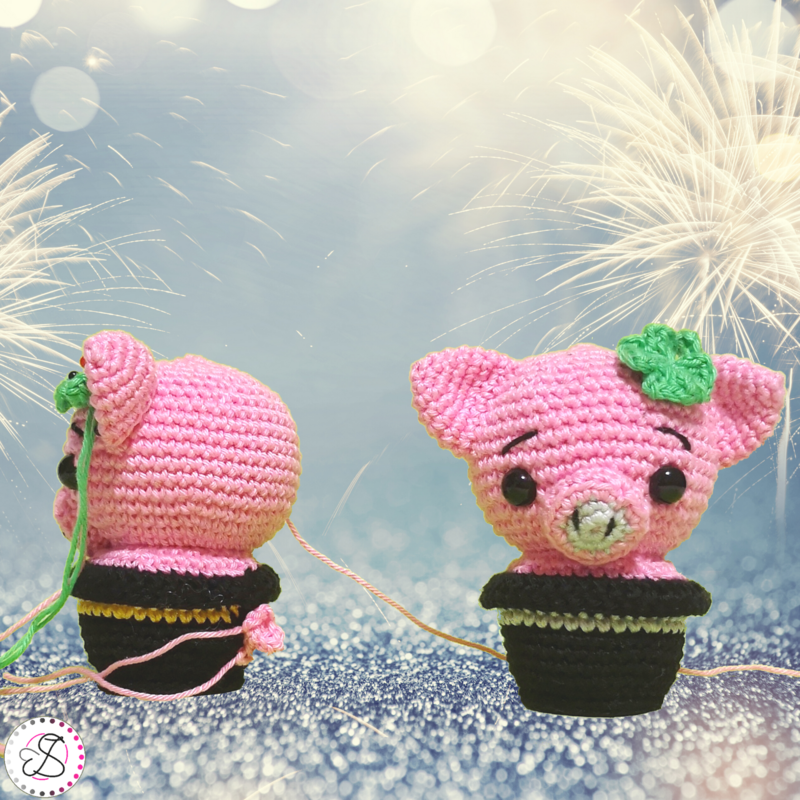 Häkelanleitung für einen niedliches Glücksschweinchen im Hut. Das Schweinchen ist 8,5cm groß und eigent sich ideal als Glücksbringer und Mitbringsel zu Silvester.