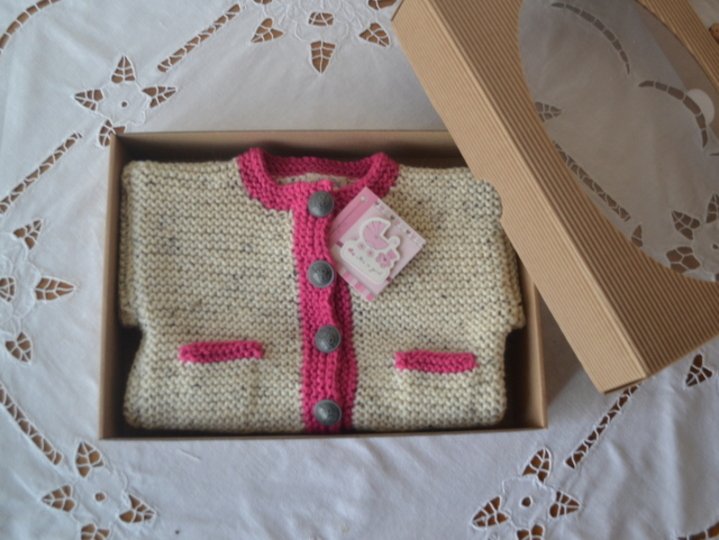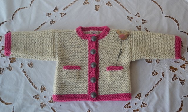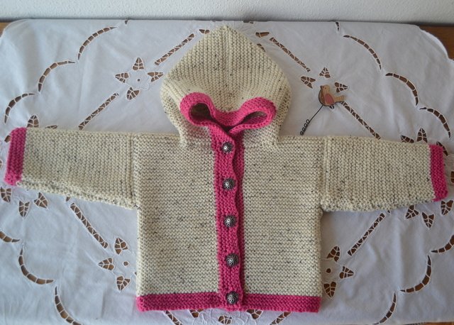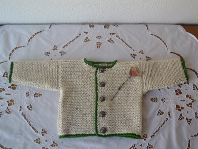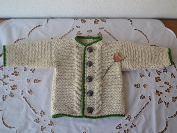Strickanleitung für Baby Trachtenjacke in 4 Varianten: 1 - simpl, 2 - mit einfachen Zöpfen am Vorderteil, 3 - mit Kapuze, 4 - mit Taschen.