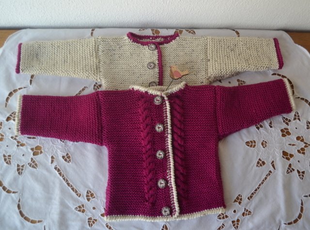 Die ersten 2 Jacken sind umgehäkelt mit festen Maschen