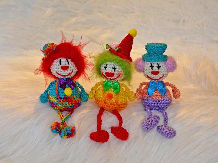 Mit dieser Anleitung zeige ich dir, wie du diesen lustigen Kantenhocker "Clowns" häkeln kannst.