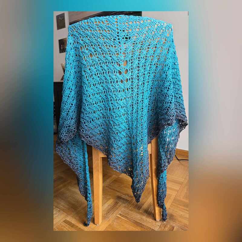 Meine liebe Freundin Stephanie hat sich dieses Tuch gewünscht. Das Muster kommt beim Tuch Lonid vor und sie wollte ein Tuch mit ihrem Lieblingsmuster machen. Diesen Wunsch habe ich ihr gerne erfüllt und nun können sich alle an diesem Dreiecktuch erfreuen.