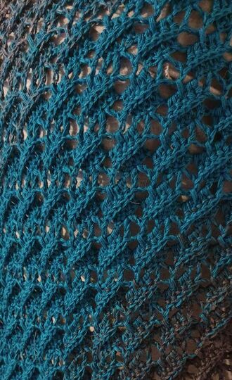 Außerdem musst Du die zweite Seite des Dreieckstuchs nach der Mitte gegengleich, also die Maschen in umgekehrter Reihenfolge abarbeiten, können.