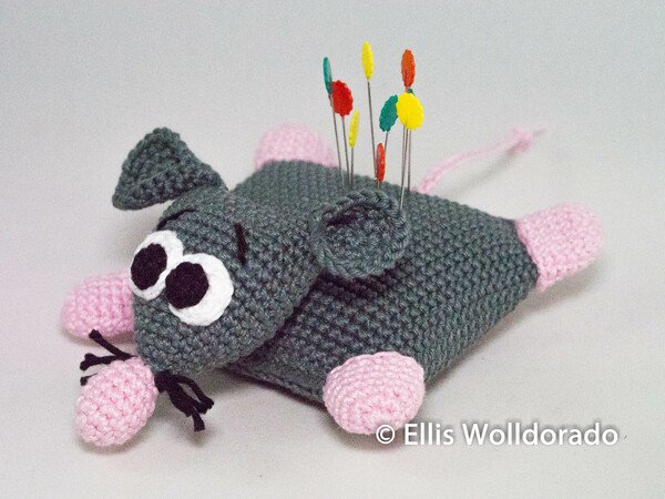 -- Häkelanleitung für das Nadelkissen platte Ratte --