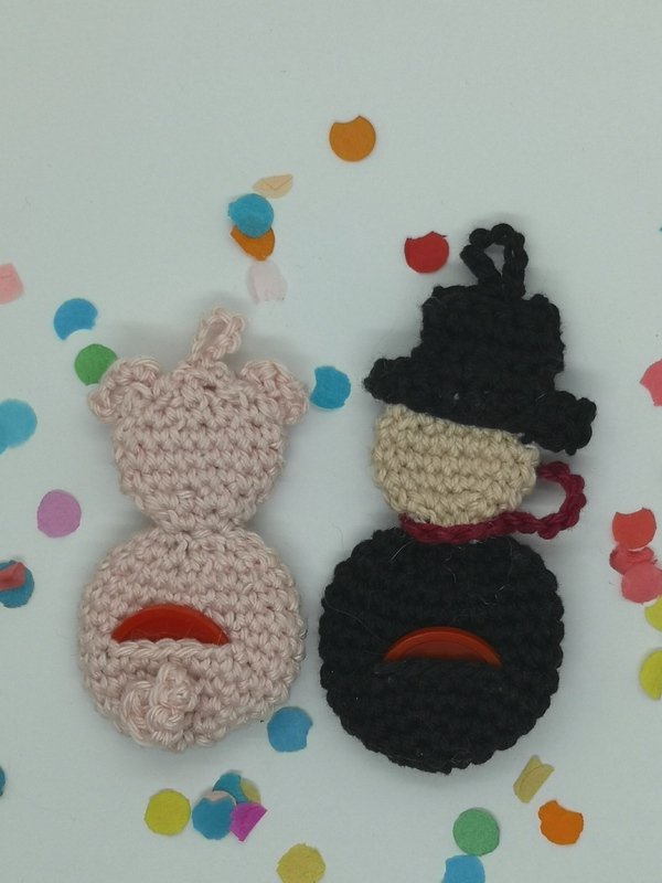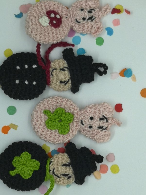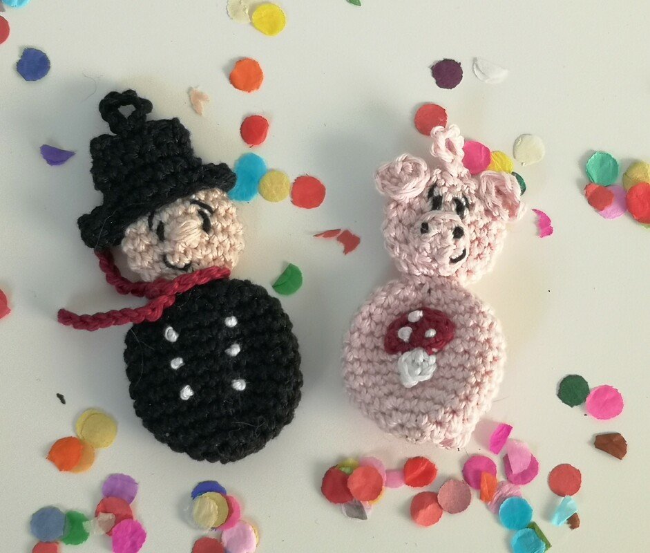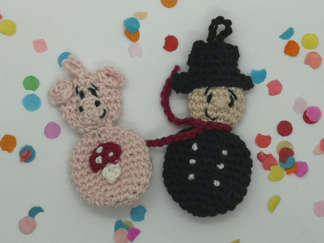 Diese beiden Glücksbringer in Form eines Schweines oder eines Schornsteinfegers sind wirklich ratzfatz und mit Wollresten im Nu gehäkelt.