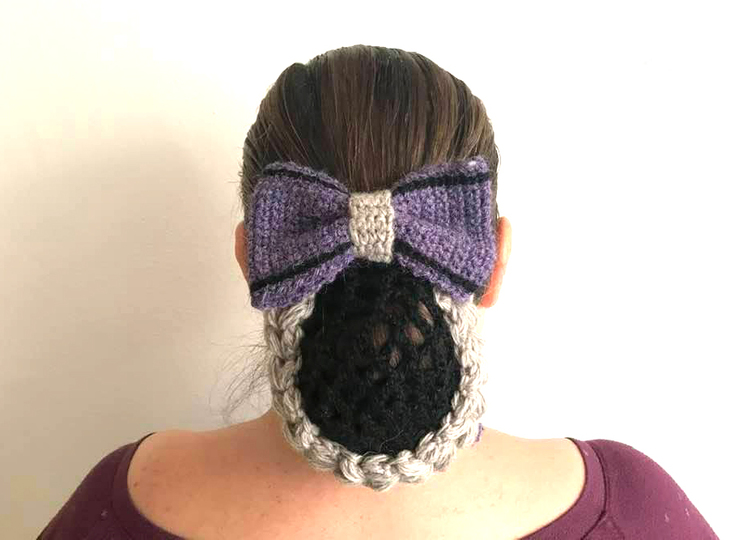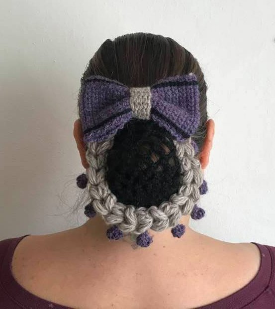 Haarspange, Duttverziehrung, Tunierspange, Balettfrisur.....Für das schicke Haarschleife mit Netz kannst Du Deine Wollrest benutzen.