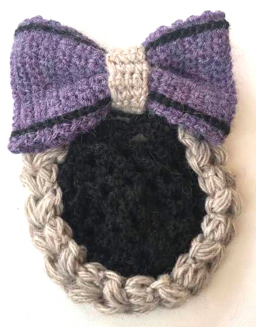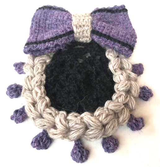 Ich nehme lila + schwarz...diese Wolle hat auf 50gr -135 m + Häkelnadel 3