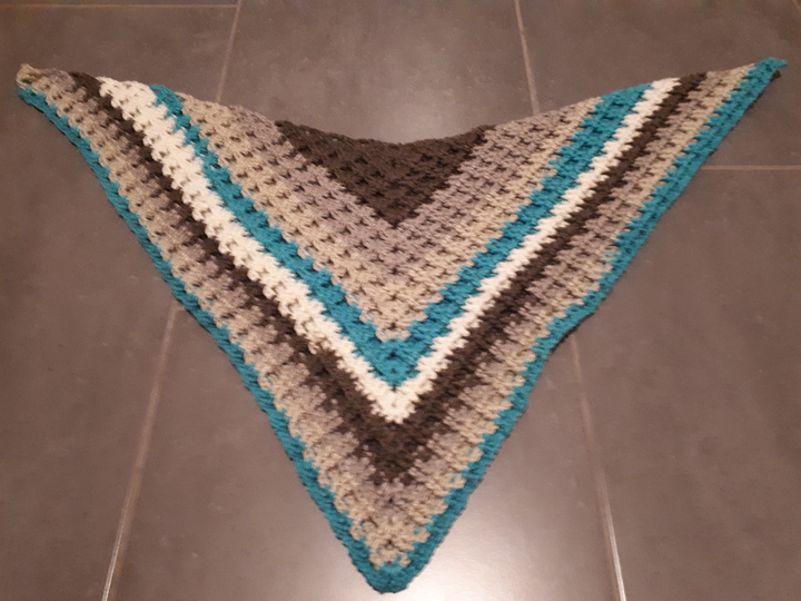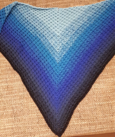 Am besten nehmt ihr einen 1000m Farbverlaufsbobbel. Ihr könnt aber auch mehr Meter nehmen, damit es größer wird oder ihr nehmt einfach eure Wunschwolle. Ihr müsst nur daraf achten, das ihr die Nadelstärke anpasst. Ich habe immer eine Nadelstärke mehr genommen wie angegeben, da das Tuch sehr fest wird.