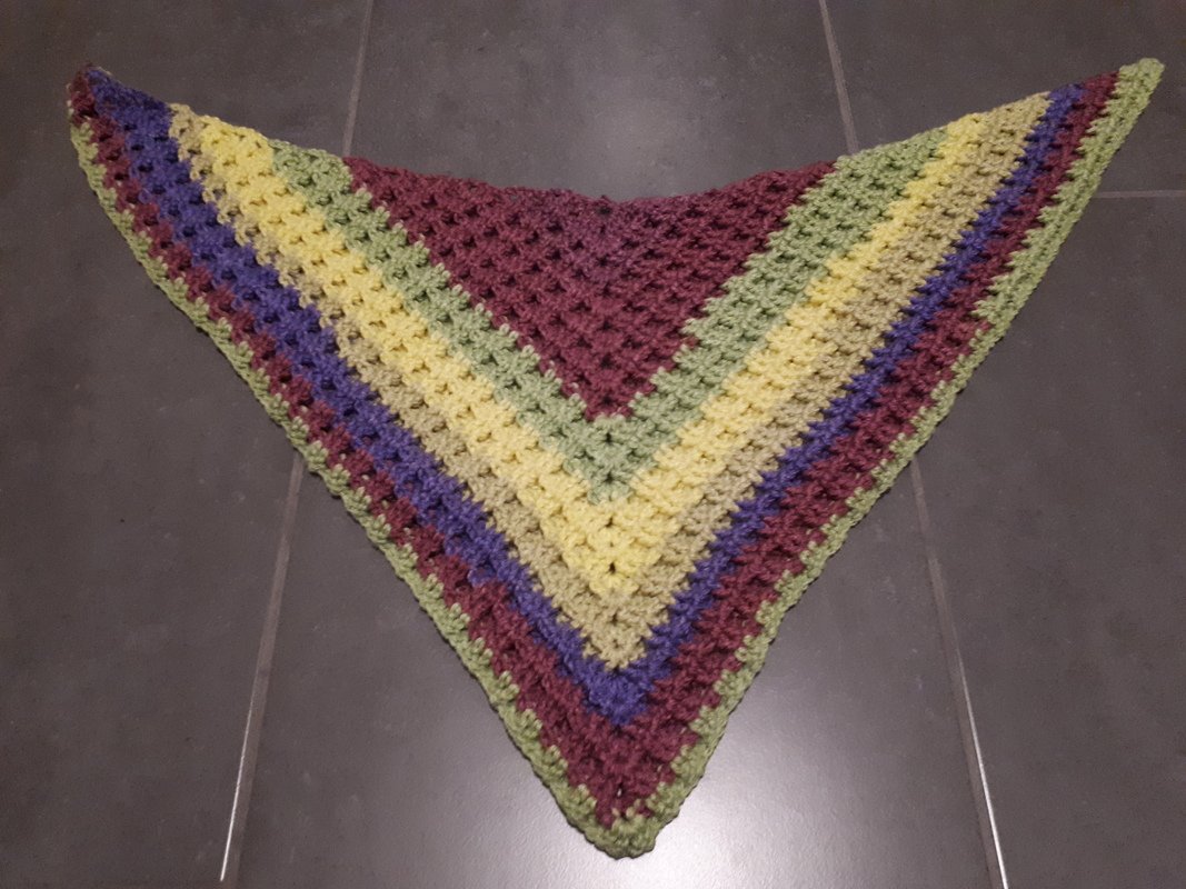 Das Tuch bzw. die Anleitung ist ein richtiger Garnfresser. Ich habe es einmal mit einem 1000m Bobbel gehäkelt und kam gerade mal auf eine Spannweite von knapp 60 cm. Ich habe es auch noch ein paar mal mit einer kleineren Meterzahl gehäkelt und das Tuch wird natürlich dadurch auch kleiner.