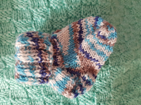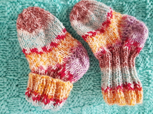 Ich stricke die Söckchen aus Sockenwolle oder aus kuscheliger Babywolle mit einem Nadelspiel Stärke 3. Der Verbrauch für ein Paar Babysöckchen ist ca 30 Gramm.