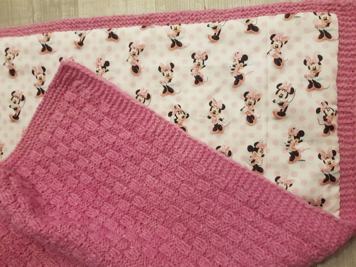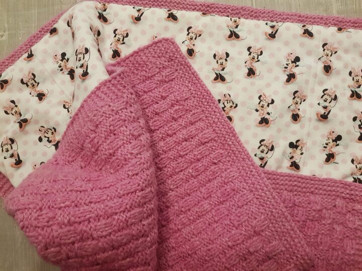Diese Decke ist auf der Rückseite mit Futter ausgestattet, weil ich ein Flechtmuster gewählt habe, dass nicht auf beiden Seiten gleich aussieht. Außerdem ist sie so stabiler und gut als Krabbeldecke verwendbar.