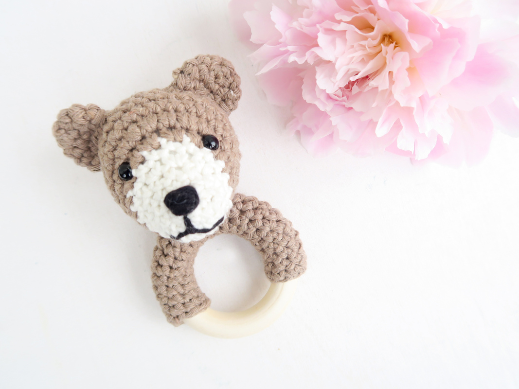 Beißring und Rassel in Einem. Somit ist der kleine Bär von GoldKindBerlin nicht nur ein Hingucker und Spielzeug, sondern erleichtert den Kleinen auch das Zahnen. Dieses Tutorial beschreibt die Herstellung der Rassel. Es handelt sich um KEIN fertiges Produkt.