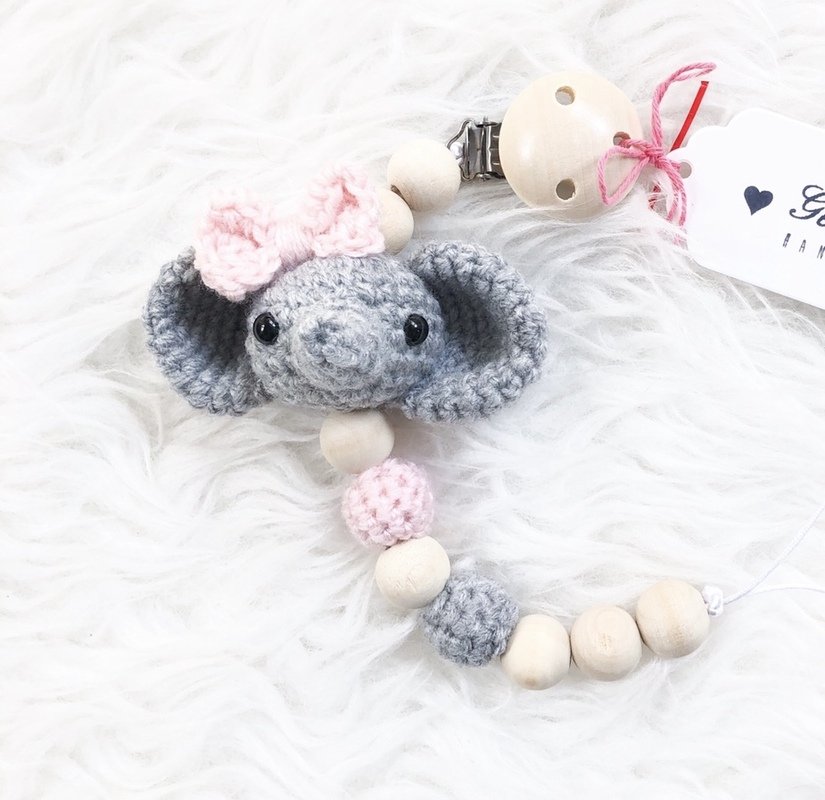 Mit dieser Häkelanleitung kannst du einen süßen kleinen Elefantenkopf häkeln. Geeignet zum Beispiel für Schnullerketten, Kinderwagenketten, Maxicosianhänger, Schlüsselanhänger, als Deko, Taschenbaumler usw.