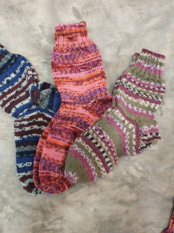Schon als Kind hat mir meine Oma das Sockenstricken gelernt und ich stricke heute noch genauso wie damals. Ob beim Fernsehen, im Wartezimmer beim Arzt ich stricke meine Socken überall, wo sich die Gelegenheit bietet, sogar als Beifahrerin im Auto, was meinen Mann köstlich amüsiert.