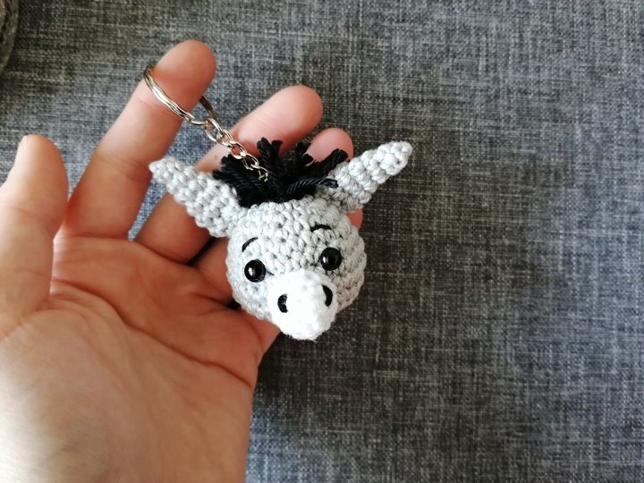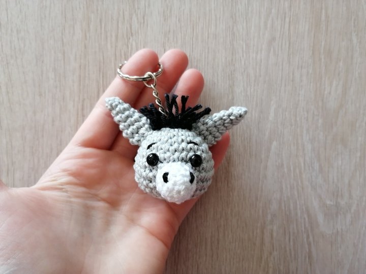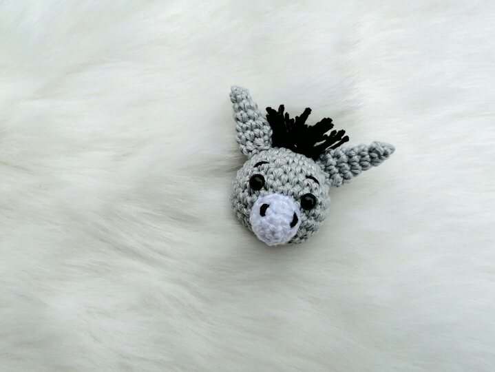 Entdecke unsere detaillierte Häkelanleitung für einen süßen Eselanhänger, perfekt für Schlüssel, Taschen oder als niedliche Geschenkidee.