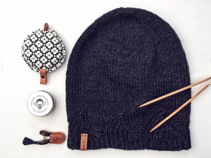 Die Mütze wird von unten nach oben in Runden gestrickt und nutzt ein sehr einfaches Abnahmemuster. In der Anleitung findest du die ausgeschriebenen Schritte und eine Strickschrift. Insgesamt strickst du als geübte Strickerin etwa 4-5 Stunden an diesem Modell.