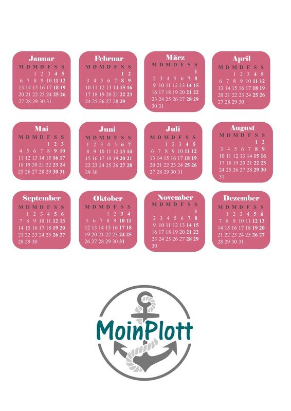 Monatskalender 2020 als Plotterdatei separat erhältlich.
